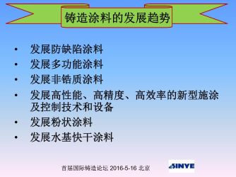 铸造涂料在中国的深入研发起步于上世纪80年代,并伴随着开始于90年代的中国铸造产业的飞速发展而不断进步,新技术、新工艺和新产品不断涌现。多元组分、复合配方是涂料产品研发的主流,功能性涂料得到越来越多的使用,有代表性的有: