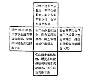 因此, 加快氧化物的生成速度或减少氧化物的消耗速度, 都有助于获得易剥离粘砂层。